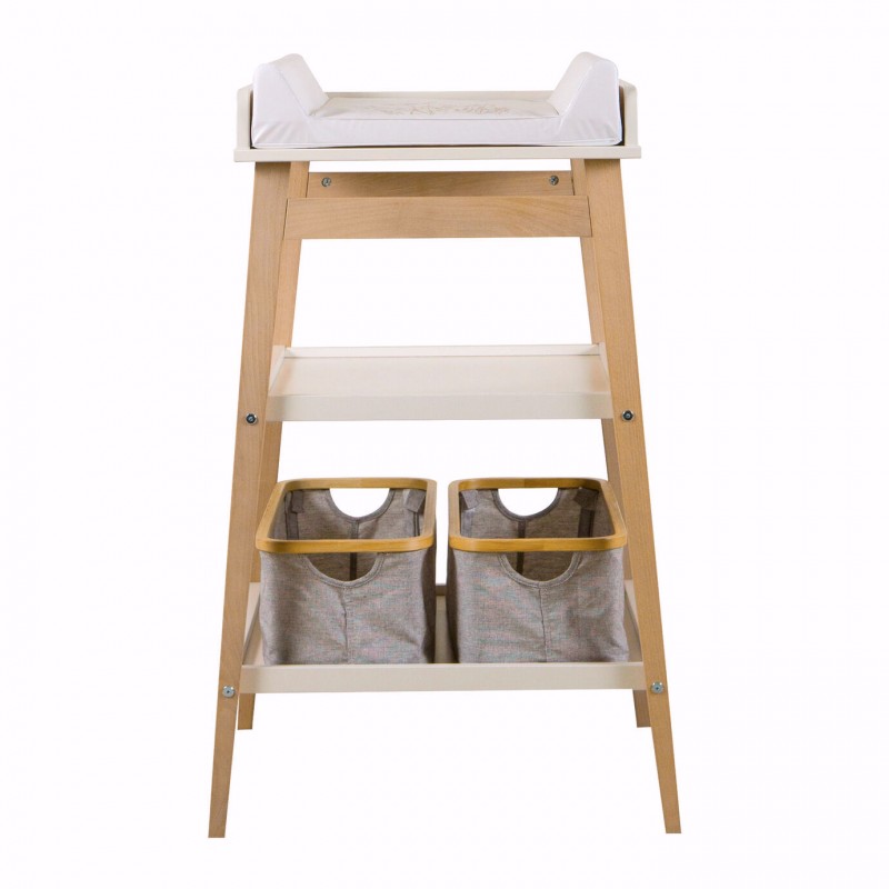 Cette élégante table à langer en MDF et hêtre allie design et simplicité d'utilisation.